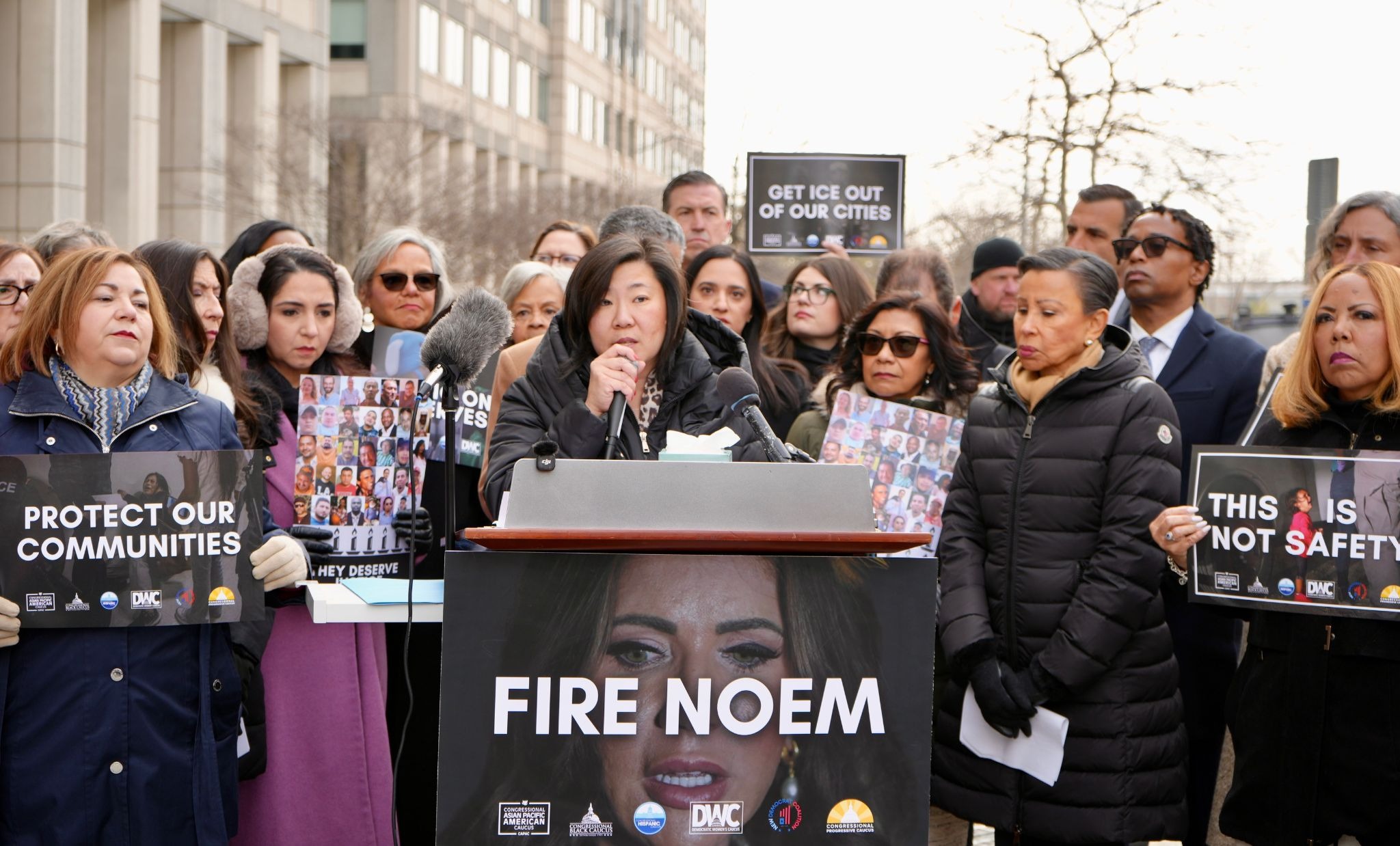 Democratic Caucuses Rally Outside ICE Headquarters, Call for Noem’s Removal and Signal Impeachment Effort