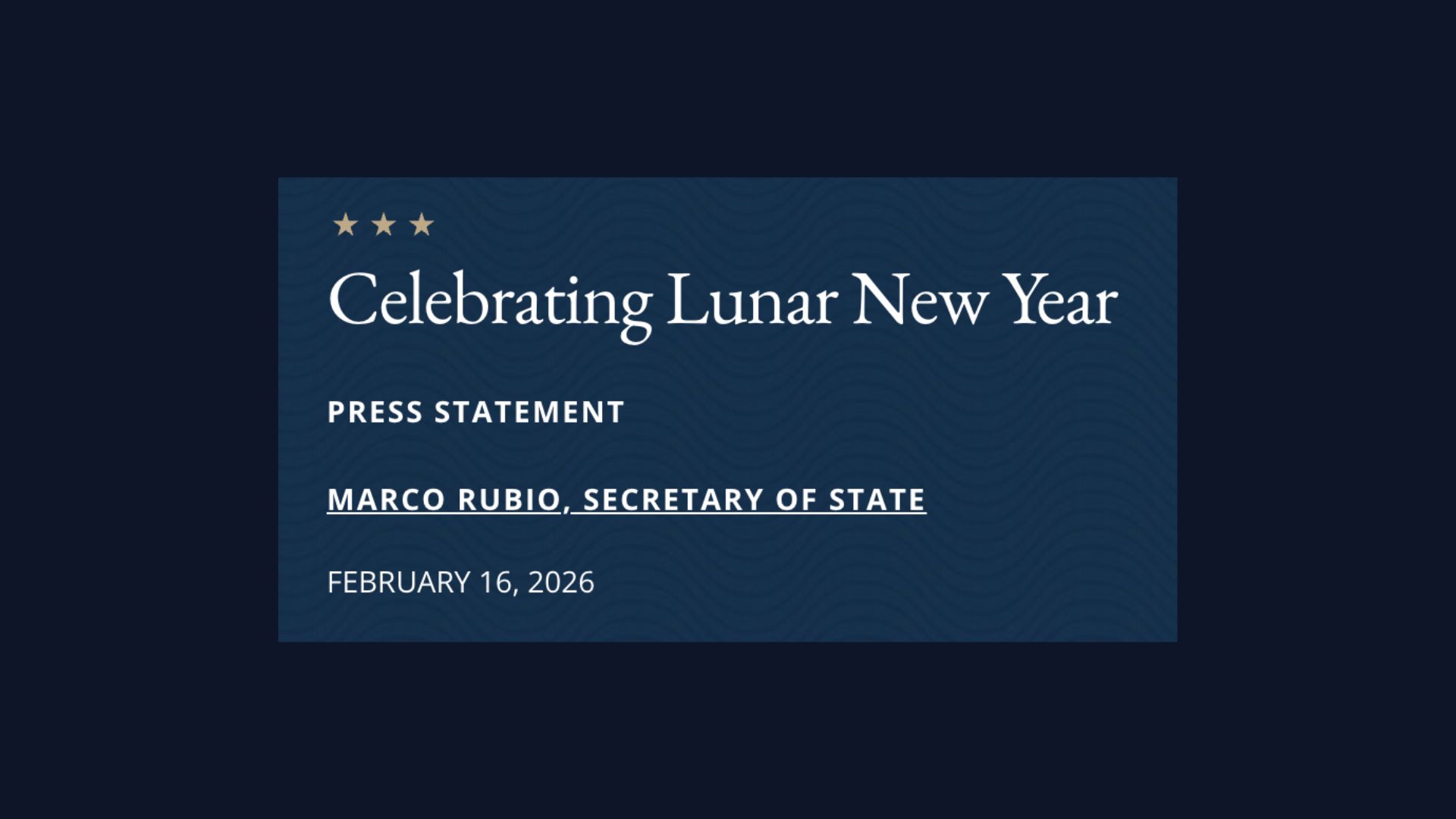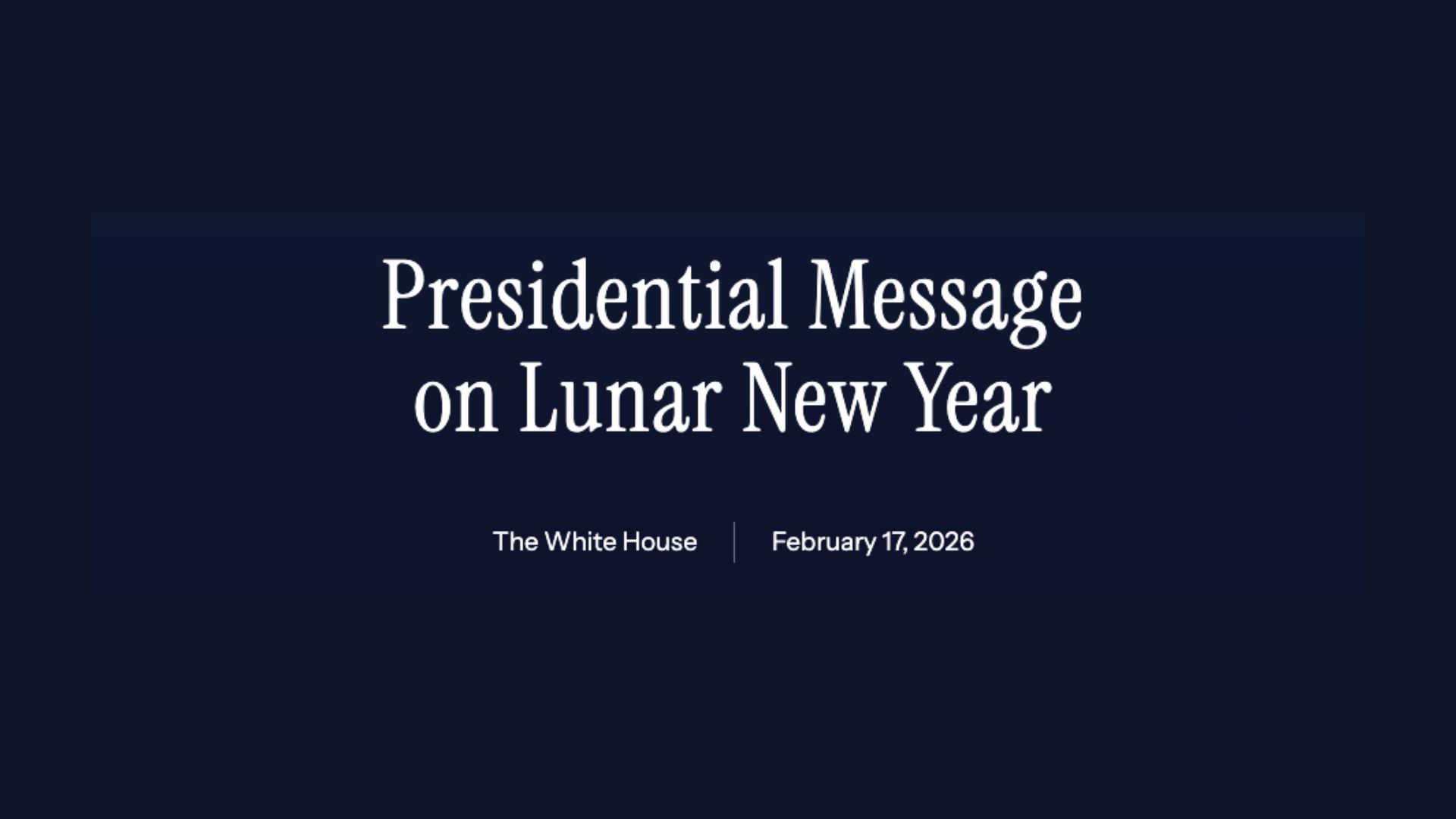 View AllWhite House Issues Lunar New Year Message for 2026